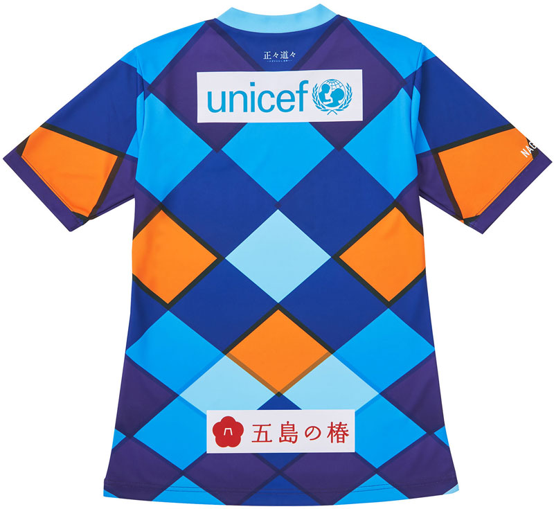 腰には「株式会社五島の椿」のスポンサーロゴを掲出。そして肩には「Unicef」のロゴを無償で掲出し、サッカーを通して長崎から平和の想いを発信。クラブの親会社である(株)ジャパネットホールディングスは、2018年より3年間で1億円の寄付を目指している。