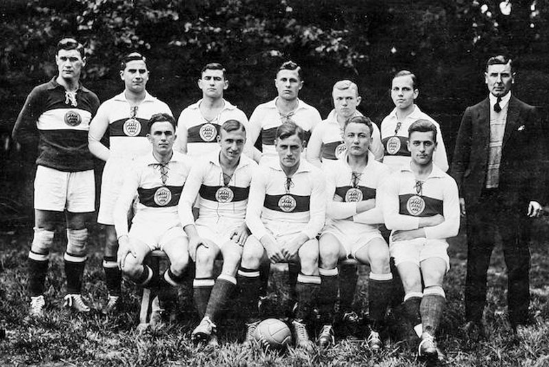 クラブ創設当時の写真と見比べると、記念ユニフォームがある程度忠実に再現されていることが分かる。