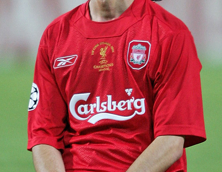 リヴァプールのファンなら、おそらく一生忘れることのないユニフォーム。04-05シーズンのUEFAチャンピオンズリーグ決勝でACミランを下し、「イスタンブールの奇跡」を起こしたキットだ。05-06シーズンはFAカップとUEFAスーパーカップも優勝している。