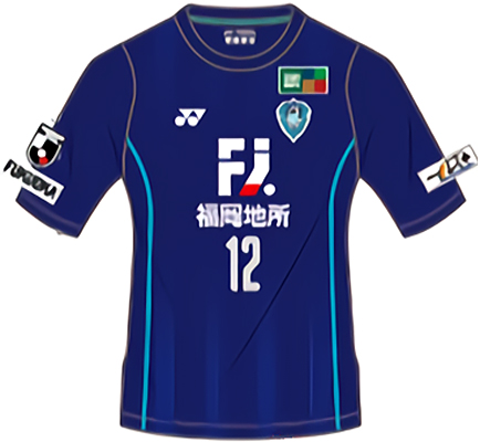 博多織工業組合の協力の元、「福岡」を表すシンボルマークとして、博多織の代表的な博多献上模様をデザインに取り入れている。縦ストライプは、博多献上の中子持縞と両子持縞で表現。「クラブ」と「ファン・サポーター」、「ステークホルダー」「地域の人々」と一緒にJ1へ、そして世界へと上昇していく未来を表現している。