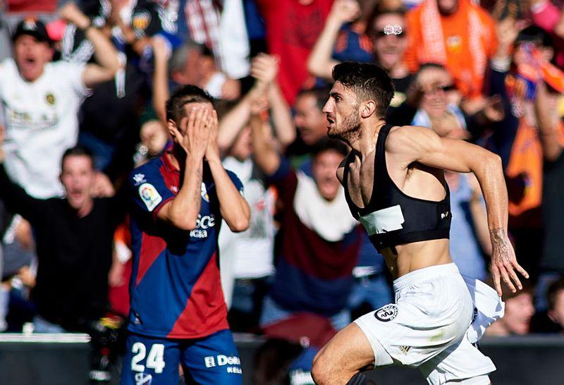 ウエスカの24番ホルヘ・ミラモンは「こんなところで脱がないでよ!ピッチーニさんのバカ!」と言っているわけではない。