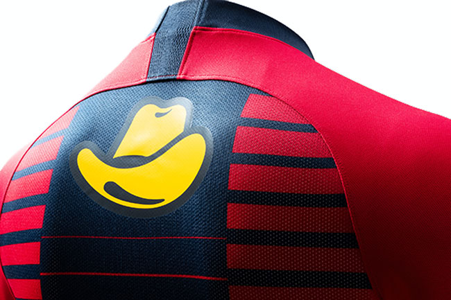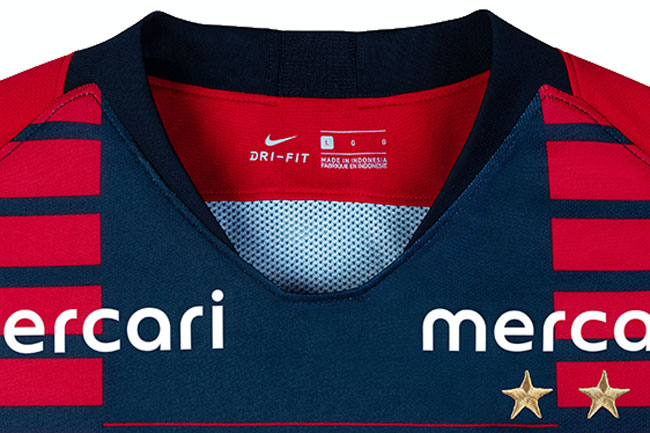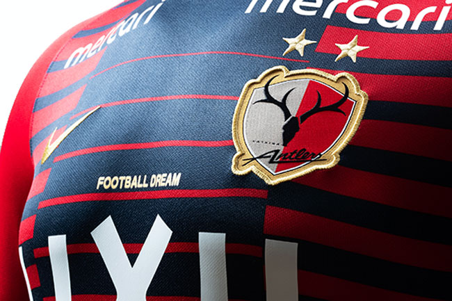 近年は軽量化を理由に、多くのチームで薄手の素材を使う傾向にあるエンブレム。だが鹿島はクラブの象徴であり、選手の誇りでもあるチームエンブレムを重んじ、刺繍のワッペンタイプを使用。エレガントさを表現している。