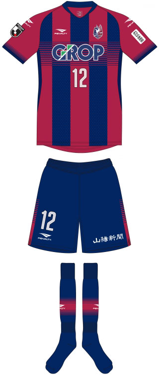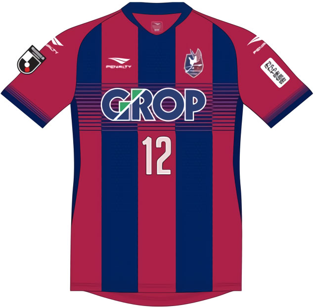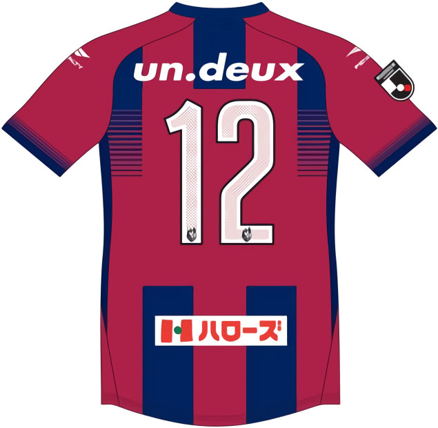 NEWホームキットは、ファジアーノレッドとネイビーのライングラデーションで融合する5本のストライプを配置し、「躍動と調和」「スピーディーな攻守の切替」を表現。垂直と水平のストライプを重ねたデザインが印象に残る。