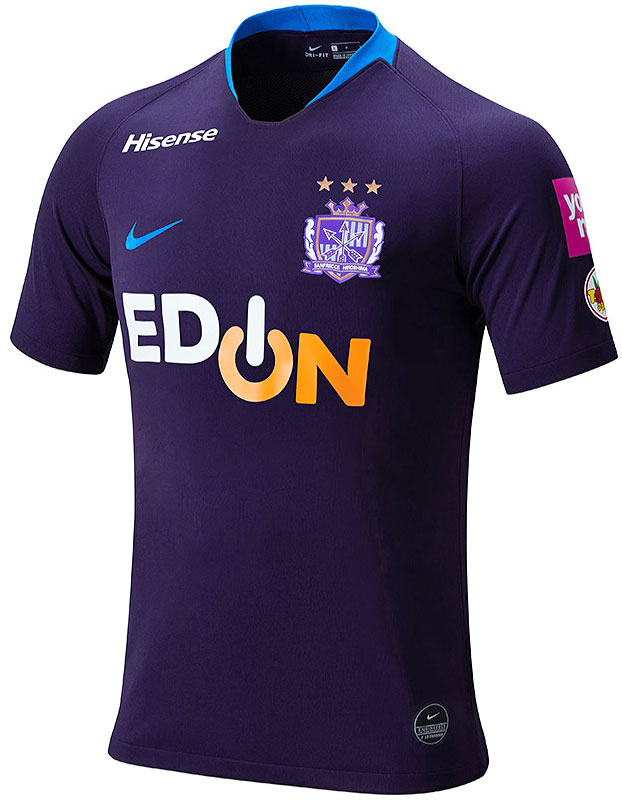 色はパープルダイナスティ(紫紺)を基調に、クラブ史上初のライトブルーというコンビネーション。人の心を落ち着かせ、穏やかにし、希望の色となり平和を表す最適な色彩として採用。同時に、多島美の瀬戸内海の鮮やかなブルーも重ね合わせている。