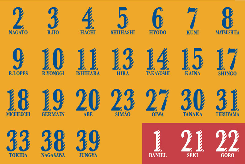 今季の胸・背番号はフォントデザインが独特。シャツと同じく「流れ星」をイメージしている。