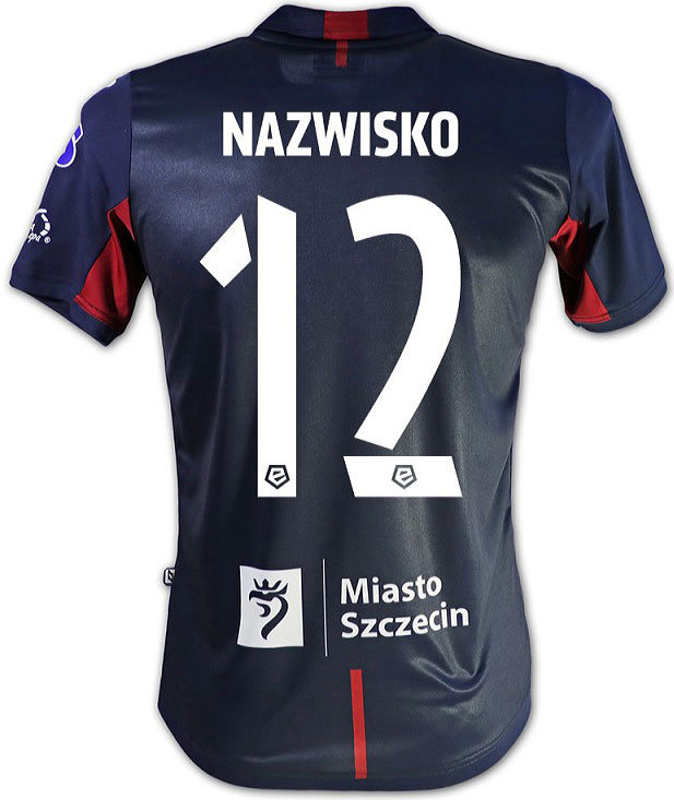 ホームキットはネイビー/レッドの組み合せだが、これはホームタウン(シュチェツィン市)の旗・紋章の色と同じ。逆三角形型が特徴的なエンブレムには、街の紋章と同じくグリフォン(上半身が猛禽類、下半身がライオンという伝説上の生き物)の首のみを描く。