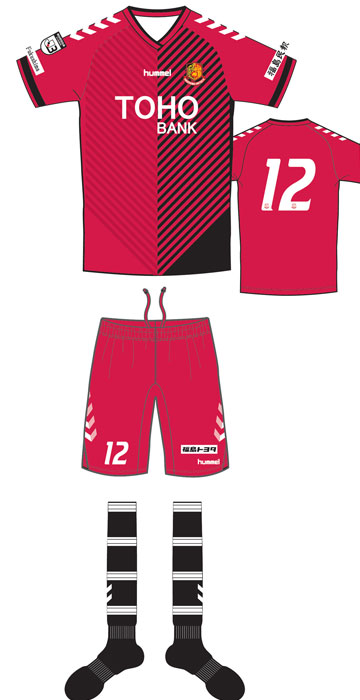 ホームキットのデザインは、未来への広がりを意味するシェブロンラインをベースに、「V」を重ねたデザインをチームカラーの赤と黒で表現。そして袖には4つのシェブロンラインで、「勝利への意欲」「チームスピリット」「前進」「復興」という意味・思いを込めている。