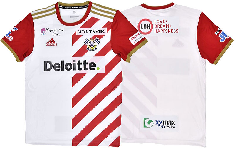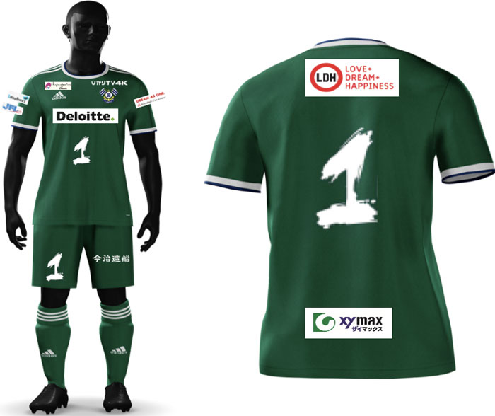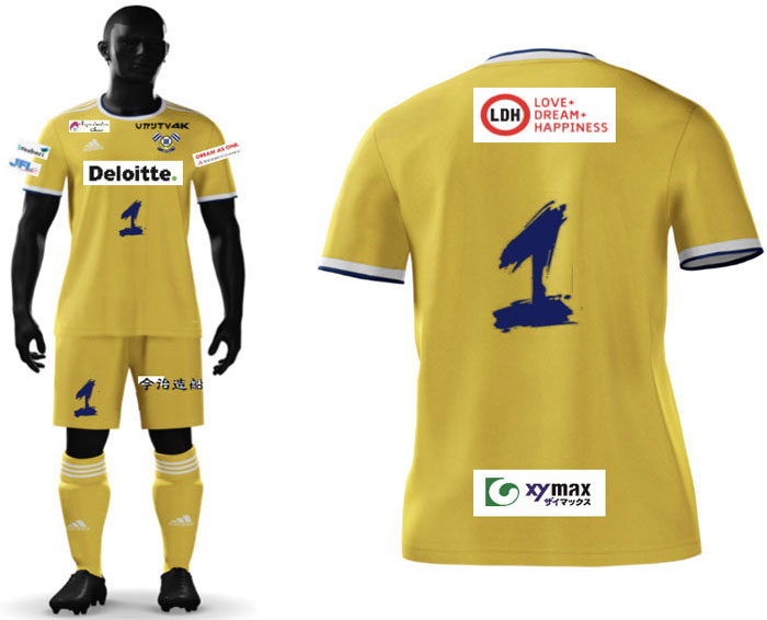 各部スポンサーは、胸が「Deloitte(デロイト)」、背中上は白濱さん(EXILE)の所属事務所である「LDH JAPAN」、背中下は「xymax(ザイマックス)」、鎖骨右は「リプロダクションクリニック大阪」、同左は「ひかりTV」、左袖は「三菱商事」、パンツは「今治造船」となる。