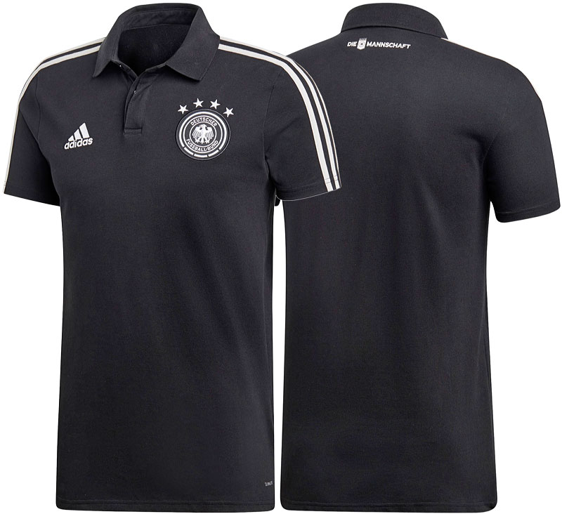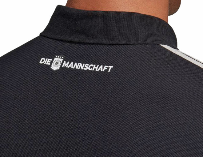 コットン70%、ポリエステル30%の柔らかな素材を使用したスリムフィットタイプのポロシャツ。胸元は3つボタン止め。背面にチームの愛称「Die Mannschaft」をプリント。