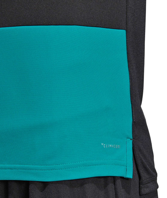 選手がトレーニングで着用するポリエステル素材のシャツ。前身頃のみグリーンで彩るデザインと、背面の裾が長いドロップテールが特徴。