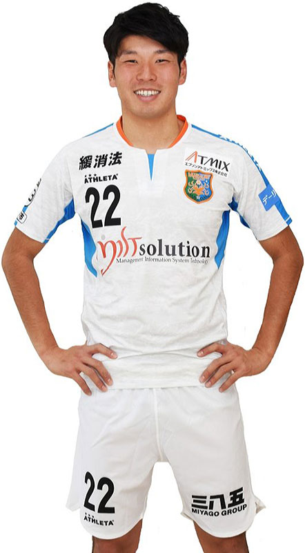 アウェイキットはホワイトを基調に、ホームタウンである八戸市の海を表すブルーで彩る。