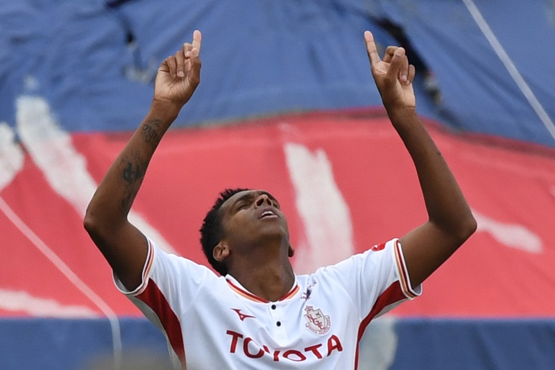 2017年にはブラジル全国選手権で得点王とMVPをW受賞し、14億円とも言われる巨額の移籍金で名古屋へ。1年目から得点王を獲得した。