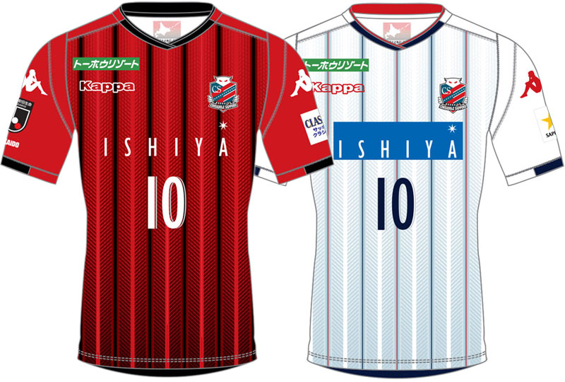 札幌のユニフォームは、ヘリンボーン柄で「トップへ昇るための力」と「J1、アジア、そして世界での活躍する推進力」を表現。胸のスポンサーロゴは商品名の『白い恋人』から企業名『ISHIYA(石屋製菓)』に変更。