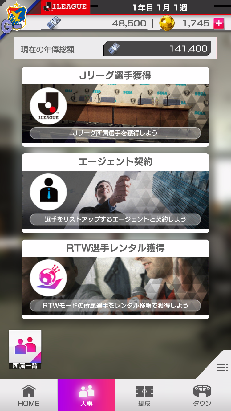 ただ、調子にのってはいけない。Jリーグモードは、本編と違い沢山の有名選手を囲うことができない仕組みになっている。年次更新の際に年俸を支払わないといけないのでコスト管理が必要なのだ。