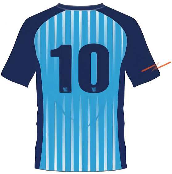 ホームキットのコンプリートルックはこんな感じで、基本的には全身ブルーを継続。パンツのサイドの曲線図形は、港町のチームらしくガルウイング(かもめの翼)の先端をイメージしている。
