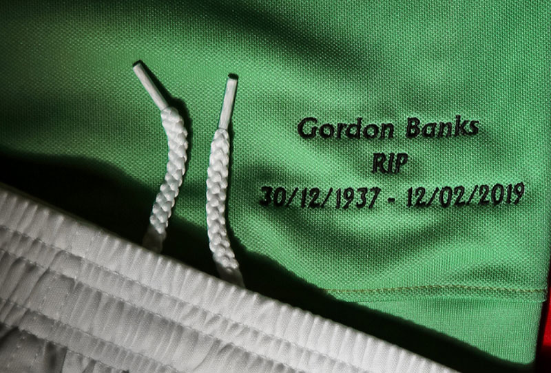 シャツ前面の左裾にはバンクス氏を追悼し、「Gordon Banks RIP 30/12/1937 - 12/02/2019」を刺繍。