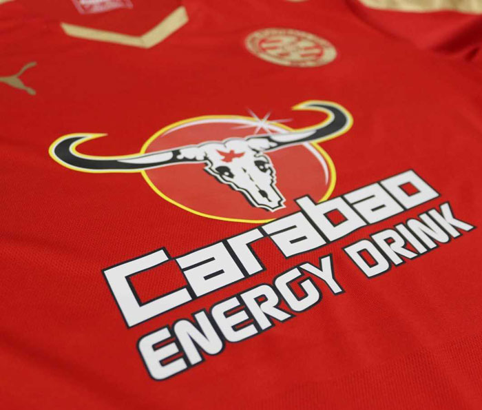 通常のキットとは異なるレッドのユニフォーム。レプリカは前述の通りチャリティー目的で5ポンドで販売する。このキットは試合では使われないが、1日に行うトレーニングで選手が着用し、その後チャリティーオークションに出品するという。