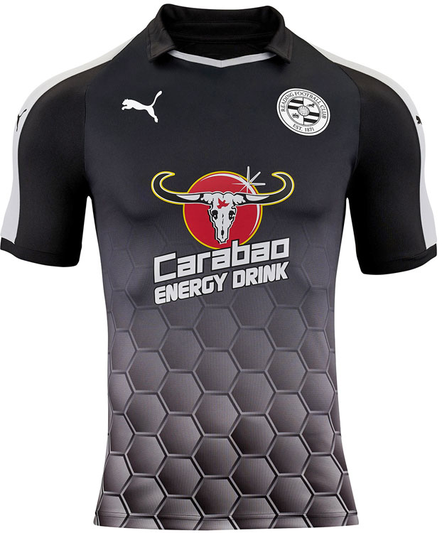 ブラックを基調のアウェイキットは、2部のチームにしては凝ったデザイン。エンブレムはモノクローム仕様となっている。
