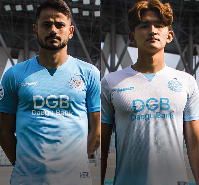 ACL初出場の大邱。ホームキットは伝統的に水色を使う。ポーランドのクラブを渡り歩いた日本人選手の西翼が、昨年からプレーしている。