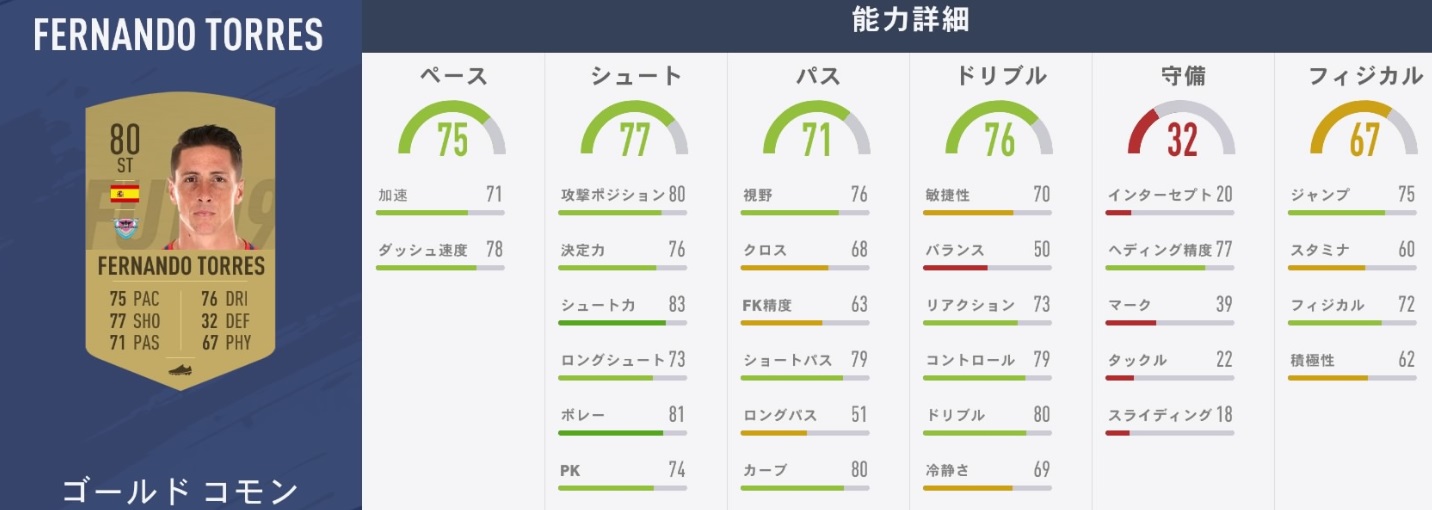 少し前になるが、サッカーゲーム『FIFA19』のアルティメットモード内で全盛期バージョンのトーレスが登場。その能力設定を見てみよう。