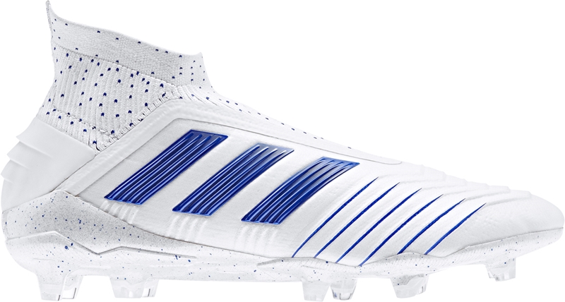 ワンピース構造のアッパーによる一体感フィットの『プレデター 19』。新色は、ランニングホワイト×ボールドブルー×ボールドブルー。