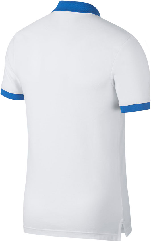 ホワイトを基調にブルーが鮮やかな半袖ポロシャツ。コットン素材の柔らかな着心地を得られる。選手も着用予定。