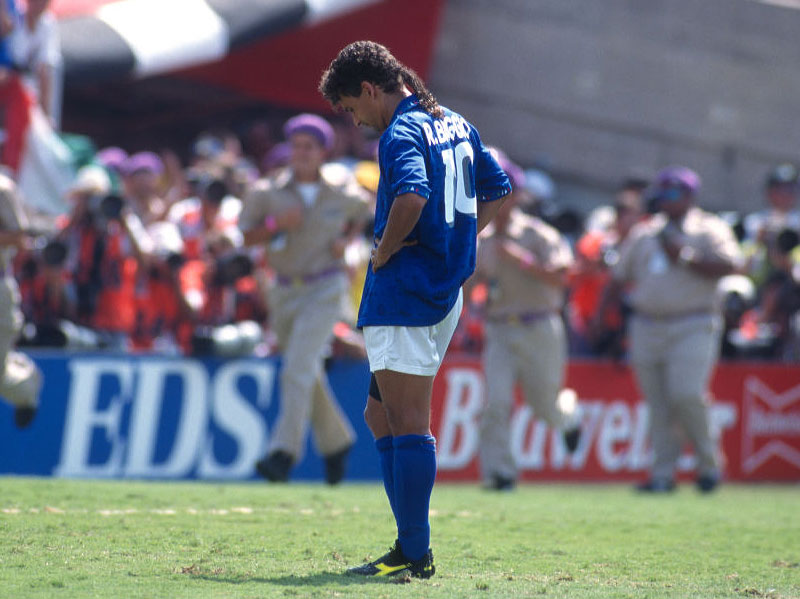 【平成6年】ブラジル代表との94年W杯決勝戦は、120分間をスコアレスで終えてPK戦に突入。そしてロベルト・バッジョの蹴ったボールがクロスバーの上を越えた瞬間、ブラジルの優勝が決まった。PK直後のバッジョのうなだれる姿は、皮肉にもサッカー史における名シーンに。