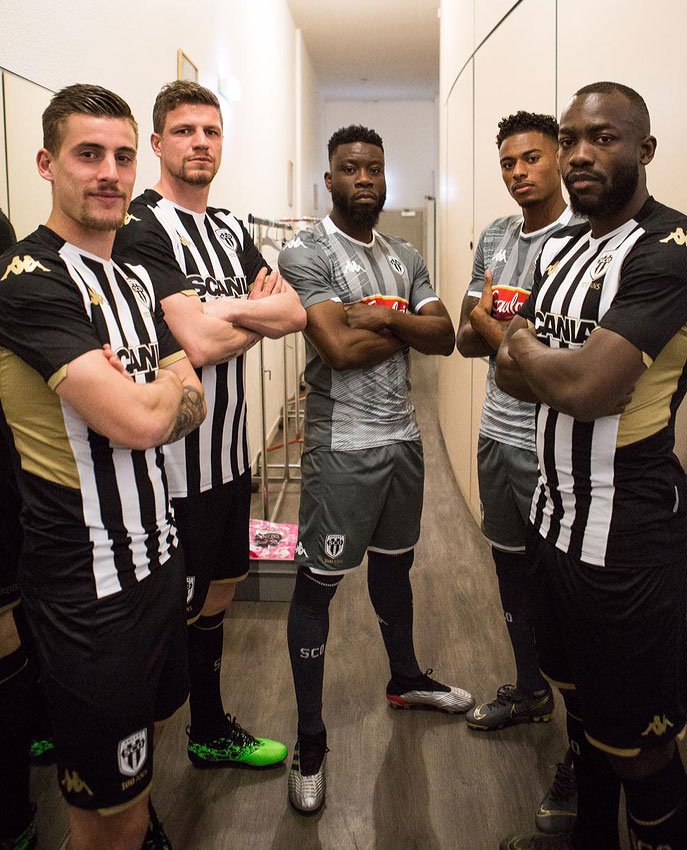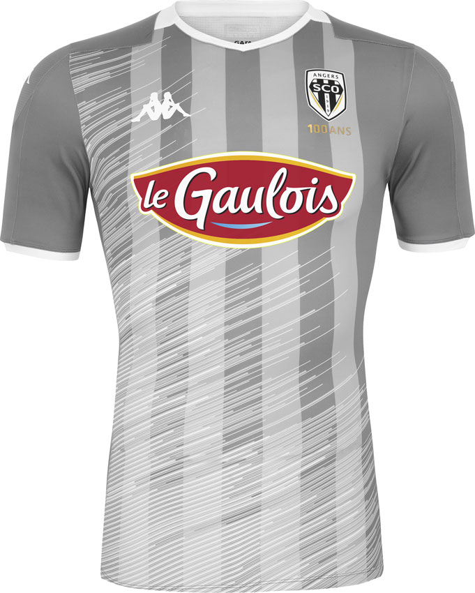 NEWアウェイキットは濃淡のグレー(もしくはグレー/シルバー)のストライプだが、そこに独特なタッチの斜めストライプを重ね合わせる。胸スポンサーはホームキットとは異なり、鶏肉食品メーカー「Le Gaulois」のロゴを掲出。