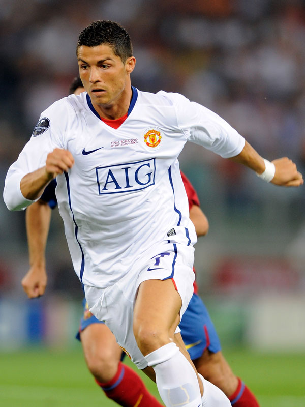 2年連続で決勝に駒を進めたマンチェスター・Uは、08-09アウェイキットで試合に臨んだ。白を基調に青の差し色で、襟部分のみメインカラーの赤で彩る。両脇を走る青のラインが特徴的なデザインだった。