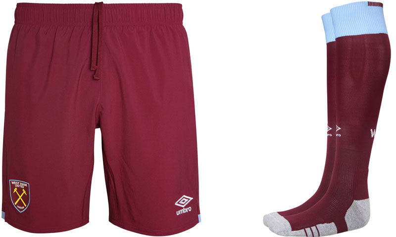 パンツとソックスはどちらもチームカラーのクラレットが基調。ソックスにはシャツと同様にスカイブルーをあしらう。