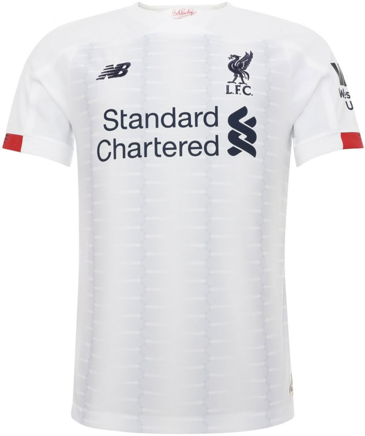 NEWアウェイキットのデザインは、リヴァプールの街のストリートサイン(標識)にインスパイアされてる。色は18-19シーズンはパープルとは打って変わり、今回は定番のホワイトで彩る。