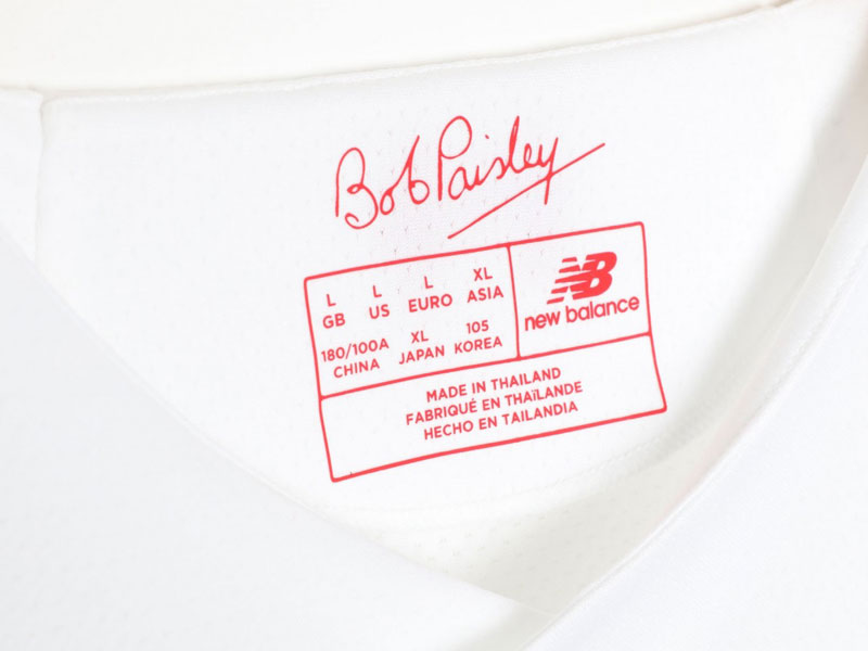 ホームキットと同様に、首元の内側にはボブ・ペイズリー氏の直筆サインをプリント。19-20モデルはペイズリー氏の生誕100周年を記念している。