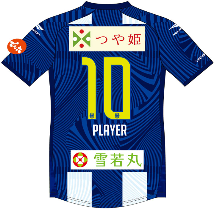 今年の夏季限定ユニフォームは、流線型の模様で山形県を縦断する最上川の流れをイメージ。青と白のストライプは劇的なJ1昇格を決めた2014シーズンのデザインを踏襲し、J1昇格に向けての揺るがない想いを表現した。