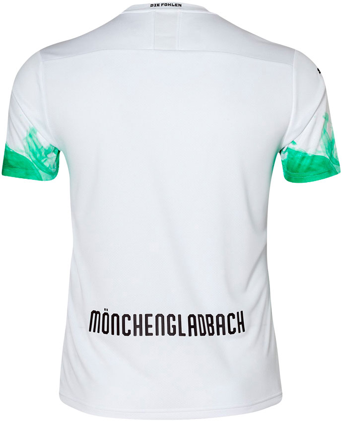 背面はグラフィック無しのホワイト一色で、首元にはチームの愛称“Fohlenelf(仔馬のイレブン)”をレタリング。腰部分のチーム名も継続する。