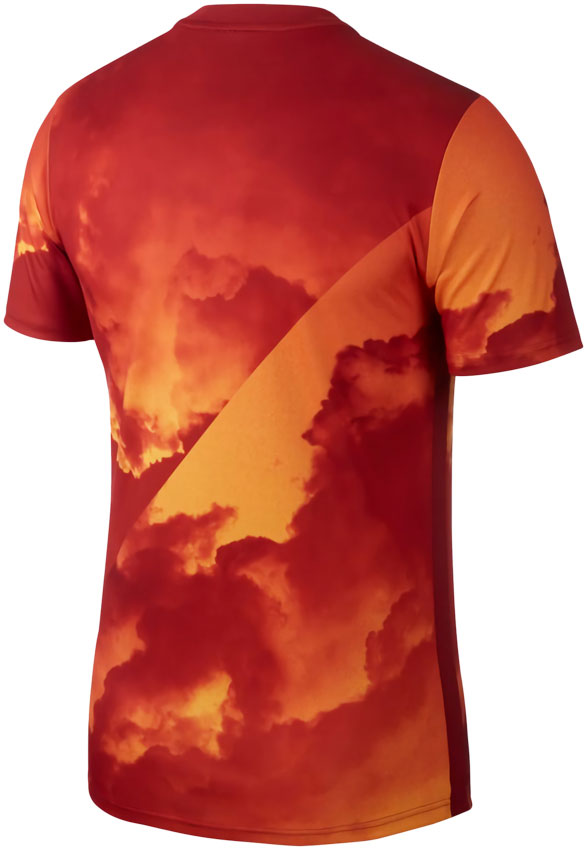 選手が試合前に着用するプレマッチトップ。空と雲のようなグラフィックが独特のデザイン。