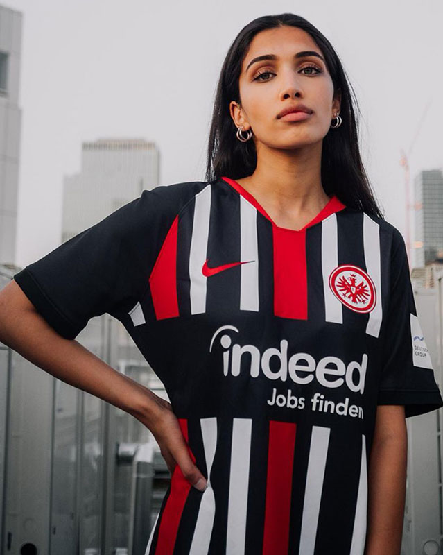 これまでフランクフルトはホームキットに「レッド」、「レッド/ブラックのストライプ」、「ホワイト」、「ブラック」など、基本的に3色を使用してきた。そしてクラブ創設120周年を迎える19-20シーズンのNEWホームキットには、その3色のストライプ柄を採用。キットの歴史を感じるカラーリングとなった。