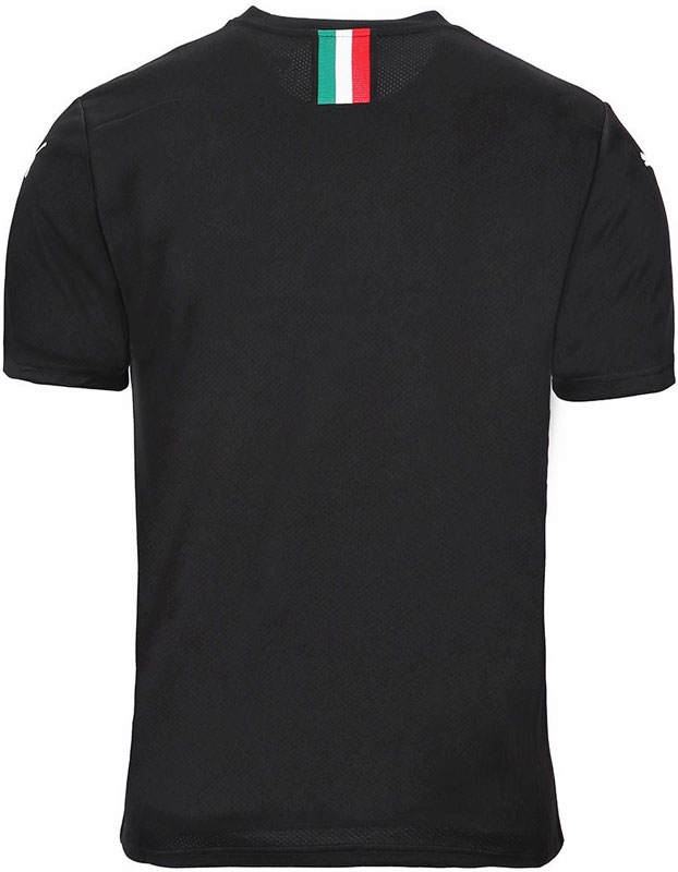 背面はシンプルにブラック一色。首元にはイタリア国旗と同じトリコロールカラーを配する。