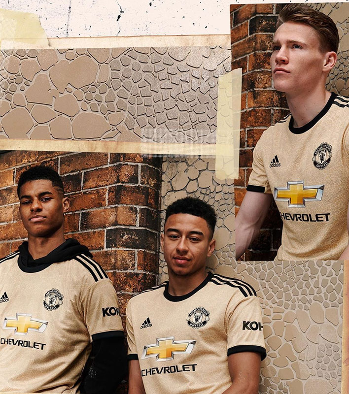 2001-02シーズンの100周年記念ユニフォームを彷彿とするゴールドカラーだが、クラブの説明によればこの色はサバンナとのこと。シャツの左裾には“MANCHESTER UNITED FOOTBALL CLUB”を垂直にレタリングする。