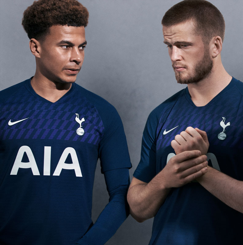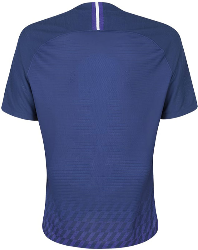 NEWアウェイキットはネイビーを基調とした中に、パープルでアクセントを付けたデザイン。胸から上のユニークなダイアゴナルのグラフィックが印象的だ。