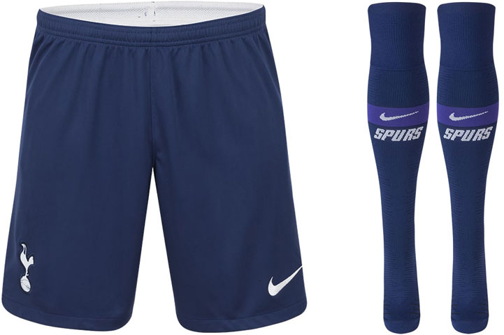 ネイビーを基調としたパンツはホームキットと共用する。ソックスはネイビーを基調とし、コンプリートルックは全身同系色に。