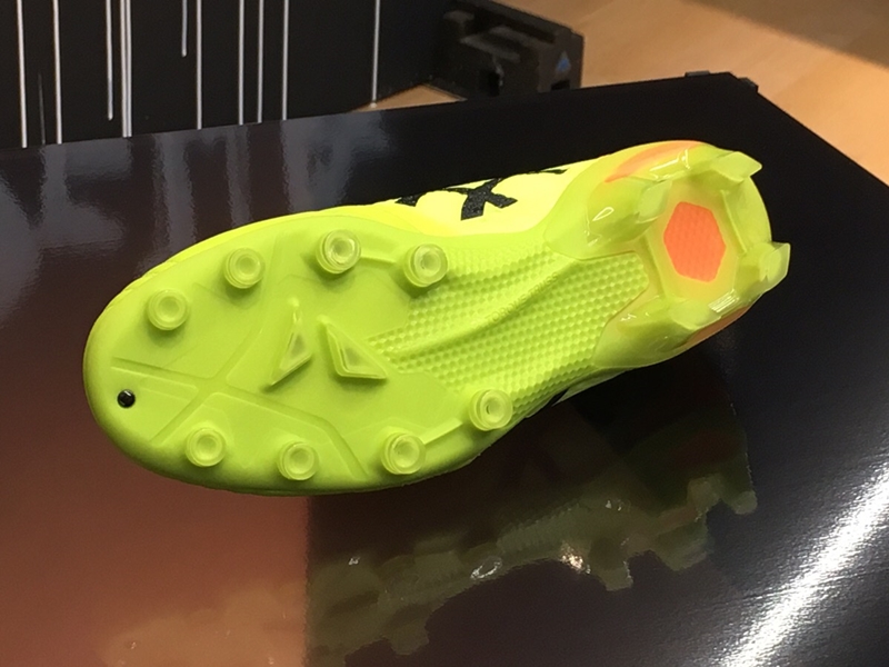 Asicsのスパイクはこれまで基本的に丸型のスタッドを採用していたが、ウルトレッツァAIでは丸型に加え、ブレード型(前足部中央)、ダイヤモンド型(後足部)を組み合わせた形となっている。