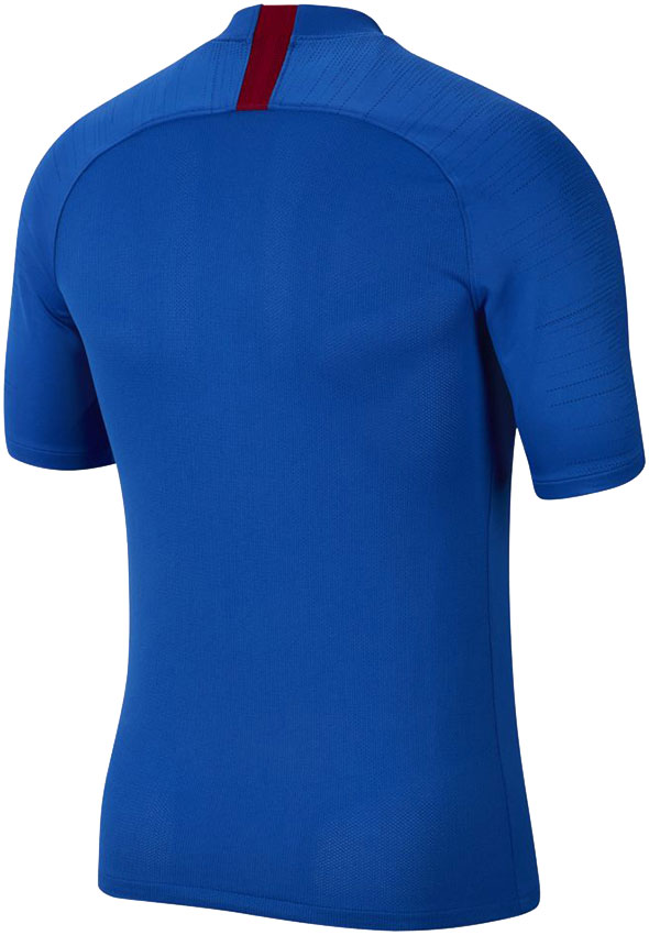 選手がトレーニング時に着用する、ポリエステル素材の半袖シャツ。縫い目が少ないため、動作がより軽快に。チームカラーのブルーを基調とする。