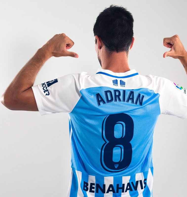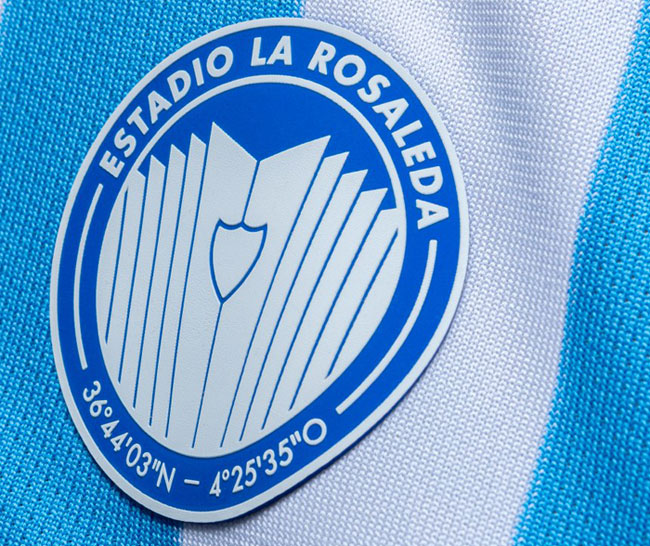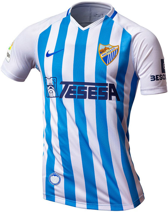 マラガのホームキットは伝統的にブルーとホワイトのストライプ。ホームタウンのマラガは海に面した街で、ユニフォームのブルーは海を表すと言われている。胸スポンサー「TASESA」はドア(扉)のメーカー。