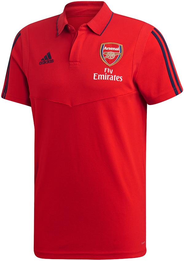 こちらの半袖ポロシャツは選手が移動の際などに着用している。他のトレーニングキットと同じで、前身頃のV字の切り返しが特徴的なデザイン。エンブレムとスポンサーロゴは縦並びで配置する。