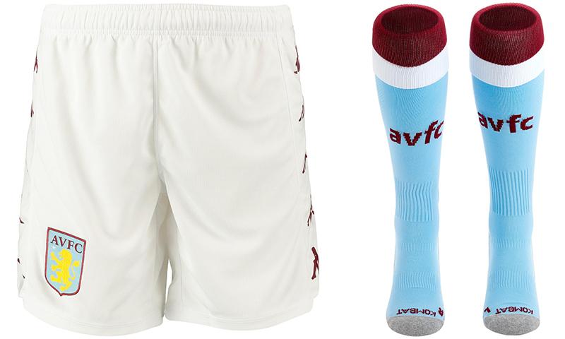 パンツはホワイトを基調としたデザインで、Kappaのロゴマークを連続でプリントする。ソックスはブルーを基調とし、前面にチーム名“AVFC”のグラフィックが入る。