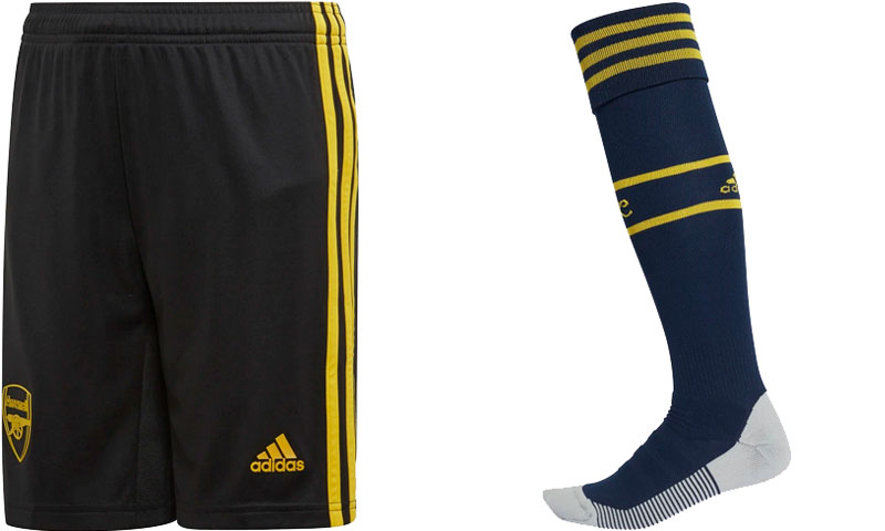 パンツはダークネイビーではなくブラックを採用し、ソックスはシャツと同じダークネイビー。パンツのブラックがアクセントとなり、色の単調さを回避している。ソックスの前面にはチーム名“AFC”、背面にはメーカーロゴのグラフィック入り。