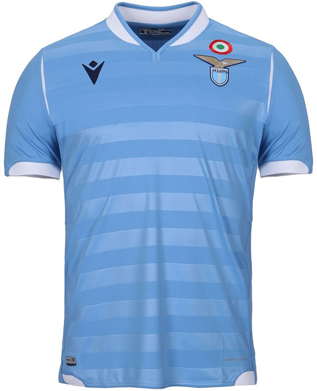 新ホームキットは、いつものスカイブルーを基調にシャドーの水平ストライプをあしらったデザイン。昨季のコッパ・イタリア王者の証として、エンブレム上にはトリコロールのパッチを付ける。