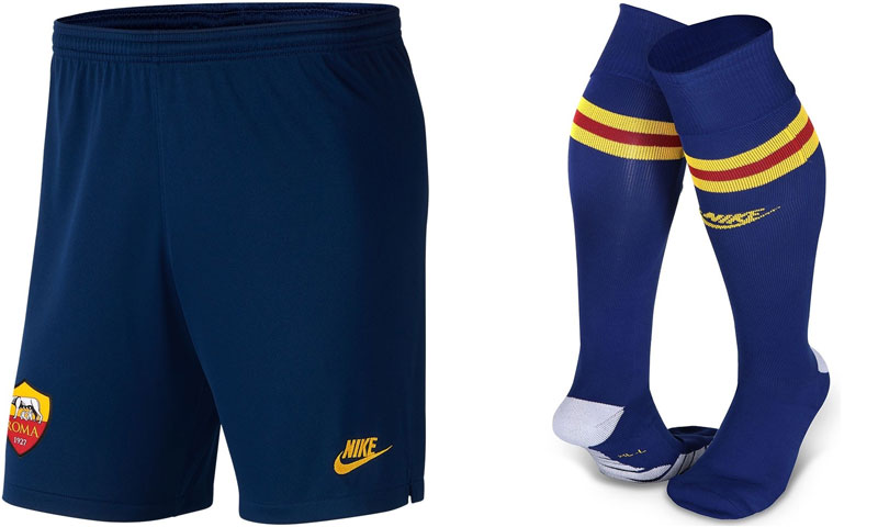 ローマの新サードキットはダークブルーをベースカラーに、ジャッロロッソ(黄と赤)のチームカラーで彩る。これは91-92シーズンで着用したサードキットと同じだ。ちなみに当時の胸スポンサーは「Barilla」だった。