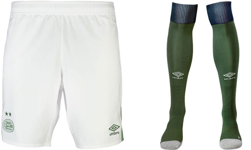 パンツはホワイトを基調としたシンプルなデザイン。ソックスはグリーンを基調に、前面にメーカーロゴ、背面にはチーム名“PSV”が入る。
