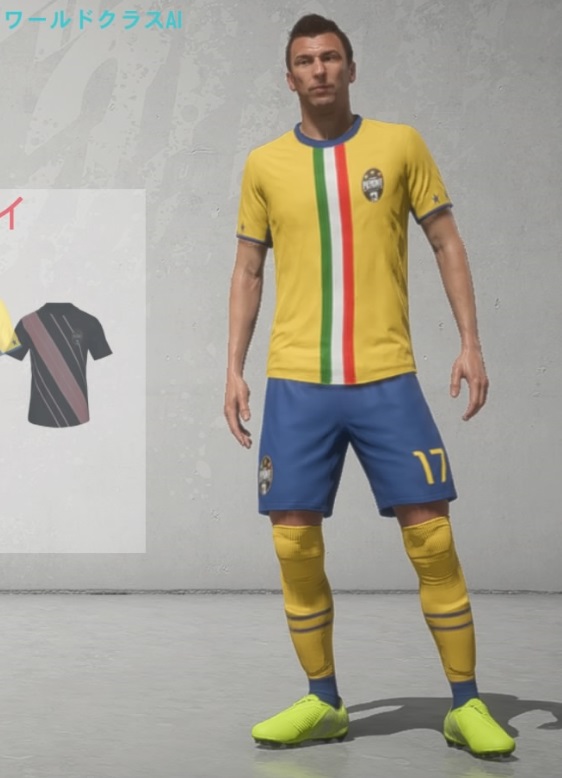 代替として搭載された「Piemonte Calcio(ピエモンテ・カルチョ)」のユニフォームはこんな仕上がりになったぞ。